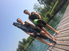 Der erste Bewerb in dieser Saison fand in Kiefersfelden Deutschland statt. Da wir den Lift schon ein bisschen kannten und wir auch wussten, dass man auf ihm auch tolle Rekorde fahren kann, kamen wir voller Freude am Vortag zum ersten Training an. Gleich im ersten Training konnten wir Beide eine neue persönliche Bestleistung erzielen und waren bereit für den Wettkampf. Im Bewerb musste David sich dann gegen die Deutsche Konkurrenz behaupten und erfuhr den unfassbaren ersten Platz. Mit 3 Bojen am 12m kurzen Seil gewann David den Slalom Bewerb, knapp vor seinem Deutschen Rivalen Felix Astner.